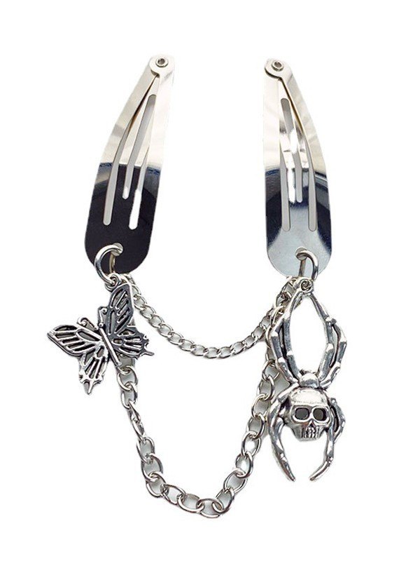 Broche para el cabello con dije de mariposa y calavera