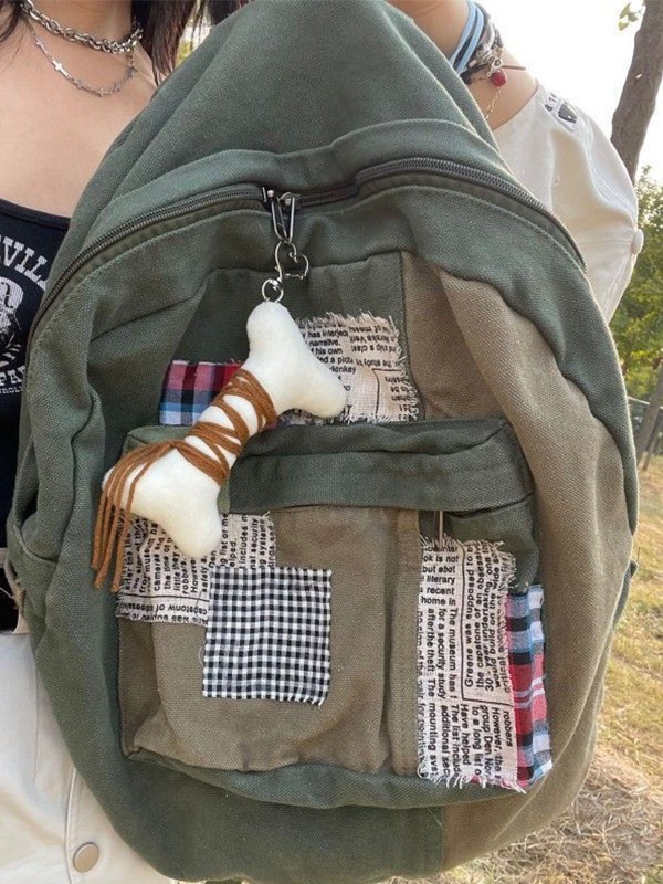 Mochila con decoración de parches diferentes