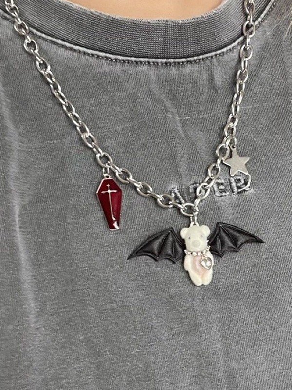 Collar con colgante de oso alado gótico