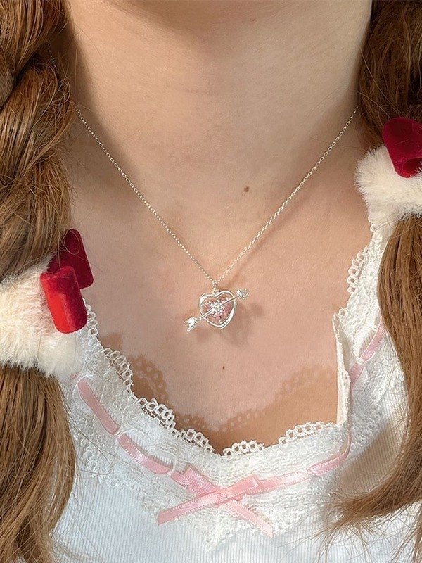 Collar con colgante de corazón con diamantes de imitación y flecha