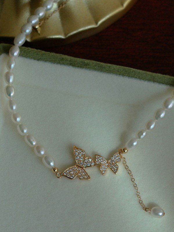 Collar de perlas de imitación de mariposa de diamantes de imitación