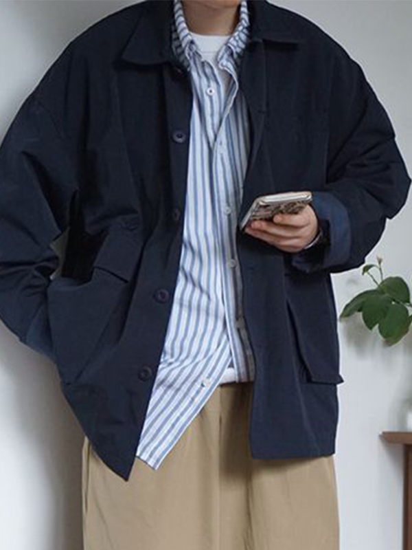 Chaqueta versátil con bolsillo grande y cuello de solapa de color liso para hombre