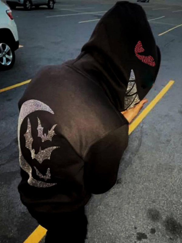Sudadera con capucha extragrande con estampado de diamantes de imitación Devil Moon para hombre