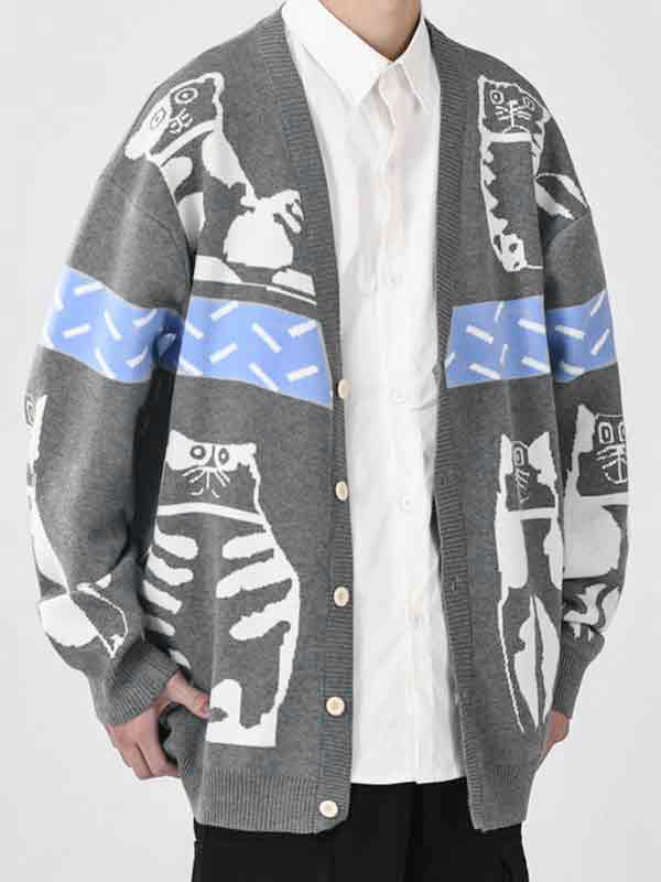 Suéter con cuello en V y estampado de dibujos animados para hombre