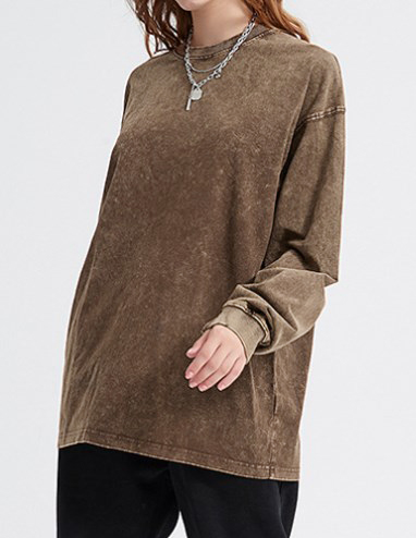 Camiseta de manga larga desgastada lavada de color sólido para hombre