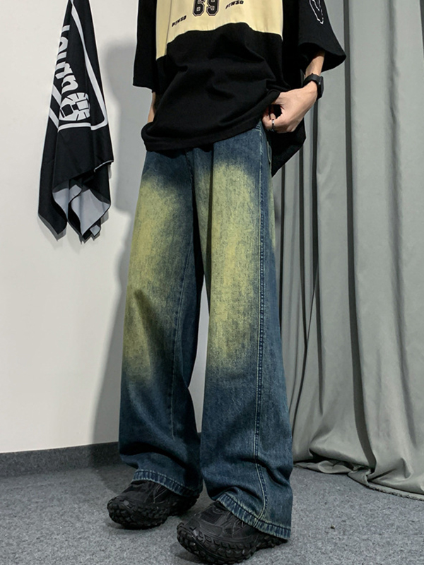Vaqueros holgados de pierna recta con lavado vintage para hombre