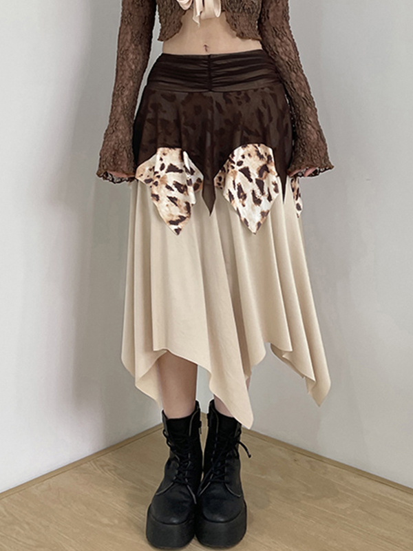 Falda larga de red estilo vintage con pequeñas flores rotas