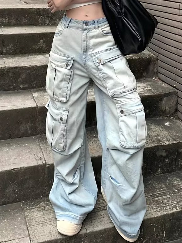 Pantalones vaqueros cargo de trabajo con bolsillos estilo retro americano
