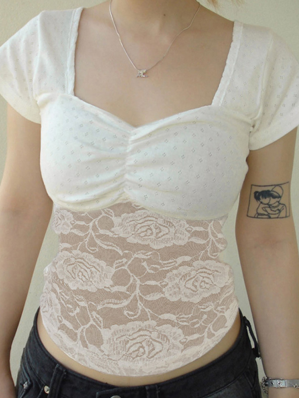 Camiseta de manga corta a rayas con un hombro al descubierto