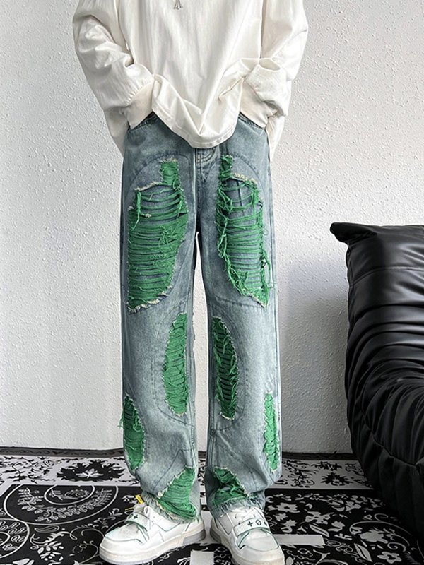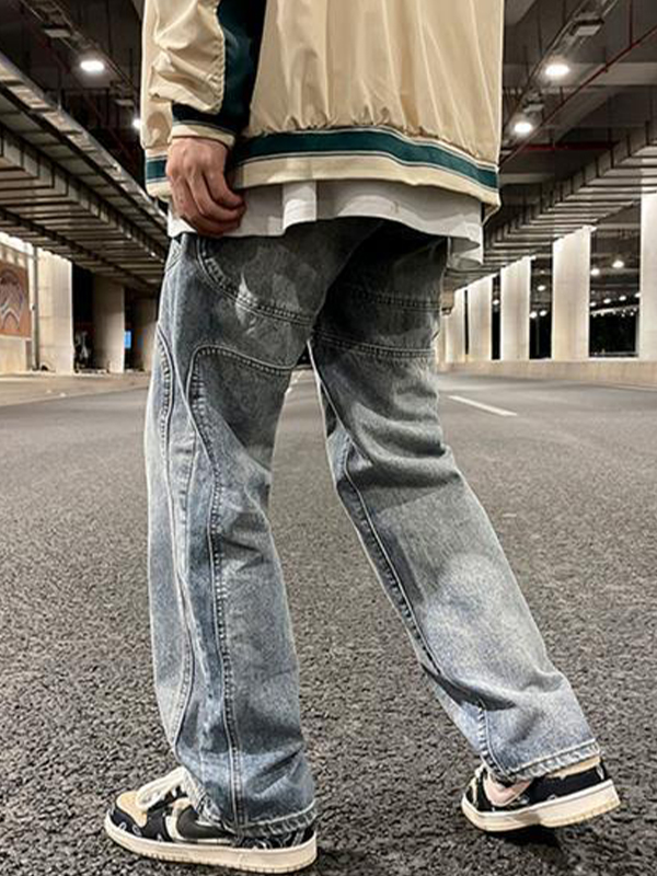 Jeans rectos desgastados cosidos para hombre