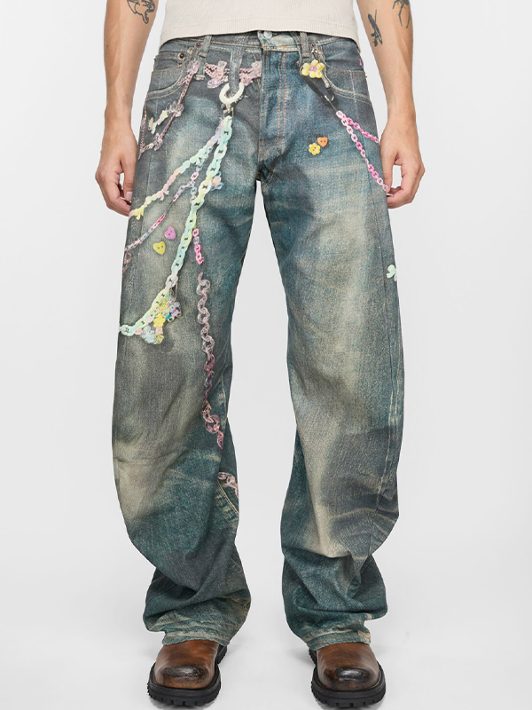Vaqueros holgados con estampado de cadena para hombre