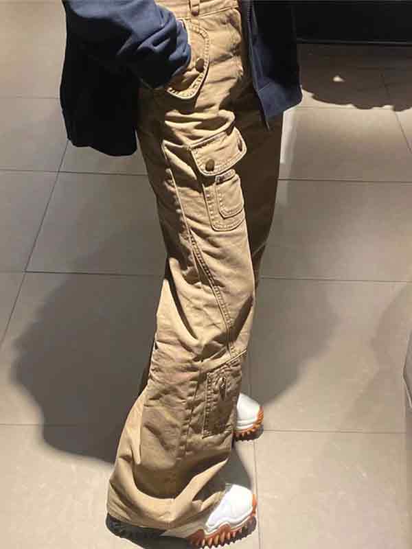 Pantalones cargo rectos acampanados con múltiples bolsillos