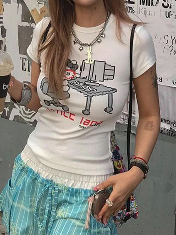 Camiseta de manga corta con escote cuadrado y lazo de encaje