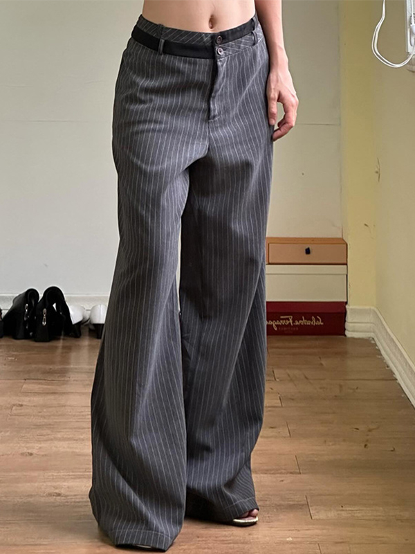 Pantalones de traje drapeados de rayas de colores contrastantes con una elegante cinturilla y pantalones largos casuales