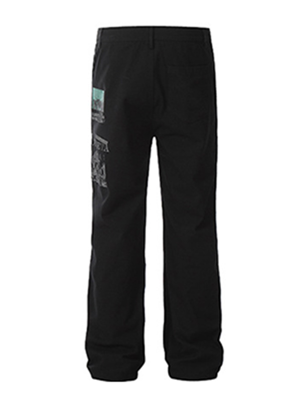 Pantalones deportivos de pierna recta con bolsillo y estampado de parches