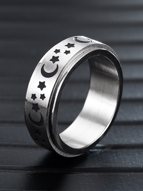 Anillo giratorio de acero inoxidable con estrella lunar grabada, 1 pieza para hombre