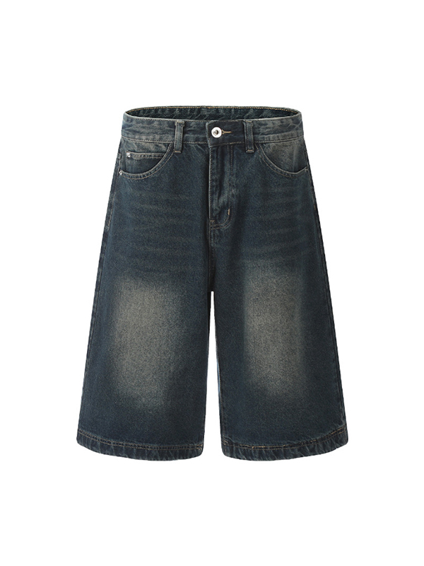Pantalones cortos azules sueltos rectos de mezclilla para hombre