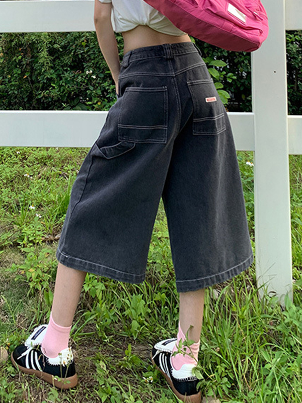 Pantalones cortos vaqueros holgados estilo vintage americano