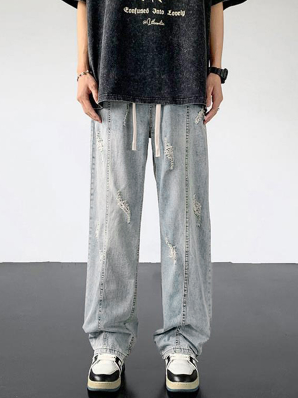 Pantalones de hombre con pierna recta y cordón rasgados lavados