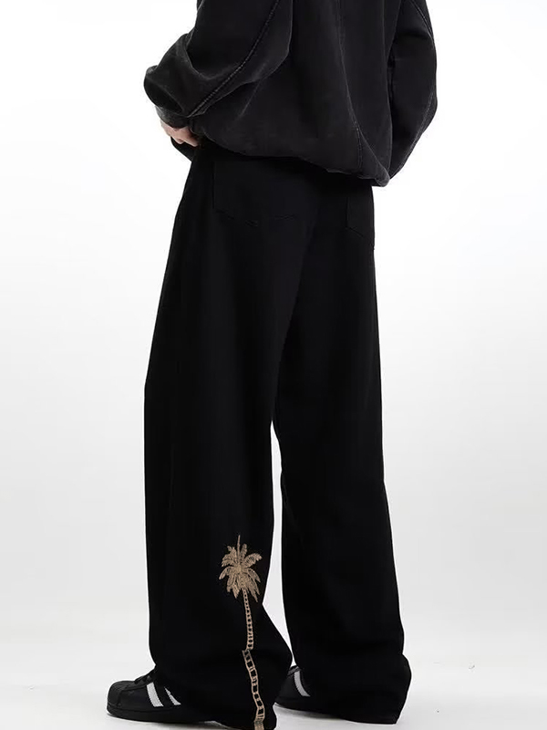 Vaqueros holgados con cordón y estampado de árbol de coco para hombre